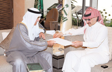 وفي بداية اللقاء شكر السفير البحريني الأمير الوليد لإتاحته الفرصة للقاء سموه، ومن ثم قدم خطاباً من ملك مملكة البحرين الملك حمد بن عيسى آل خليفة لسمو الأمير الوليد بن طلال.