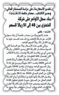 الجزيرة - الرياض صرح الرئيس التنفيذي لشركة أبناء عبد الله عبد المحسن الخضري فواز الخضري بأنه قد تم تغطية الاكتتاب للشركة بالكامل من قبل المؤسسات المالية المكتتبة بعد الانتهاء من عملية بناء سجل الأوامر التي تتم قبل طرح الأسهم على المكتتبين الأفراد, مشيراً أن هيئة السوق المالية قد وافقت