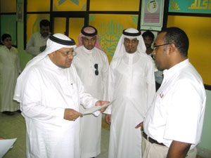 قام مديرعام التربية والتعليم صباح الاثنين الماضي بزيارة تفقدية إلى مركز القبول ومعادلة الشهادات التابع لإدارة الاختبارات والقبول وذلك بمعهد التربية الفكرية حيث اطلع واستمع من مدير إدارة الاختبارات والقبول عبدالرحمن الزهراني إلى شرح مفصل عن سير العمل في المركز وآلية معادلة الشهادات واعتمادها وآلية توزيع الطلاب غير السعوديين على المدارس. كما استمع الثقفي إلى ملاحظات أولياء أمور الطلاب وشكاواهم ووجه بالعمل على تلافيها وحلها وتلبية رغبات المتقدمين في التسجيل بالمدارس حسب الضوابط والشواغر والنسب المقررة. كما قام الثقفي صباح أمس بزيارة إلى مكتب التربية والتعليم بشمال جدة تفقد خلالها أقسام وإدارات المكتب واطلع على خطة المكتب السنوية والتقارير الميدانية اليومية عن سير العمل بمدارس المكتب وآلية معالجة الإشكاليات والصعوبات التي قد تواجهها وأشاد الثقفي بما رآه من جهود متميزة في إنجاز العمل بالمكتب وسير الدراسة وانتظامها في المدارس التابعة له. كما شملت الزيارة تفقد مبنى مكتب التربية والتعليم بشمال جدة الذي يجري العمل فيه حاليا حيث اطلع على مراحل الإنجاز التي وصل إليها ووجّه بضرورة الإسراع في تنفيذه وتسليمه وانتقال المكتب إليه.