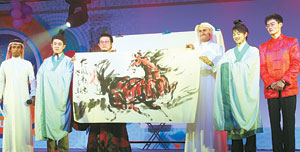 أهدت الفرقة الفنية في جامعة الاقتصاد والتجارة الدولية في الصين، والتي تقدم السيرك الفني والتراثي لبلادهم في مهرجان صيف أرامكو 31 خلال أيام عيد الفطر المبارك، بالتعاون مع جمعية الثقافة والفنون، في الدمام في الفعاليات الثقافية التي استمرت سبعة أيام، لوحة فنية إلى النائب الأعلى لرئيس أرامكو السعودية عبد العزيز الخيال، رسمت خلال أحد العروض التي تعبِّر عن روح الفنون الصينية الكلاسيكية من خلال رسمها للخيل ، حيث اندمج اللونان الأسود والأحمر بوجود تماثيل المحاربين الفخارية، ويُعد الحبر الصيني والخطوط وسيلة تشكيلية أساسية في الرسم والكتابة في الصين، والتي يرجع تاريخه إلى ما قبل ثلاثة آلاف سنة، وتعتبر من نوايا الحضارة الصينية العتيقة، بالإضافة إلى أن تماثيل المحاربين الخزفية تشكل فناً قديماً لتنسيق صفوف الجنود، تقدمهم في العرض الأستاذ المتخصص في التعليم الفني في الجامعة السيد ليو يونغ قه والذي قدم لوحة الفنون الصينية الكلاسيكية على إيقاعات الآلة الموسيقية، والتي تكونت من 30 فرداً صينياً، كما قدمت لوحة أخرى بنفس الأسلوب لمدير مشروع مركز الملك عبد العزيز الثقافي العالمي المهندس فؤاد الذرمان.