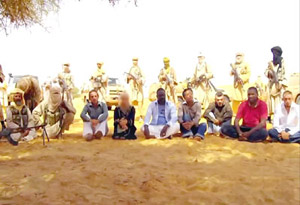 دبي - ا ف ب بث تنظيم القاعدة في بلاد المغرب الإسلامي أمس الخميس على الإنترنت صوراً وتسجيلا صوتياً ل7 أجانب بينهم 5 فرنسيين اختطفوا في النيجر، فيما اعتبرت باريس ذلك علامة مشجعة باعتبار أنها تظهر أن كل الرهائن أحياء. ويظهر الرهائن وهم خمسة فرنسيين وإفريقيان في الصور التي بدت كأنها لقطات