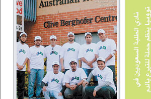 الدوادمي - عبدالله العويس نظّم أعضاء نادي الطلبة السعوديين المبتعثين في توومبا بأستراليا حملة تطوعية خيرية للتبرع بالدم؛ حيث توجهوا إلى مستشفى توومبا العام مرتدين الفانيلات والقبعات التي تحمل صوراً للعلمَيْن السعودي والأسترالي، وسط احتفاء وإعجاب الموظفين والمتبرعين الأستراليين، وفي صورة