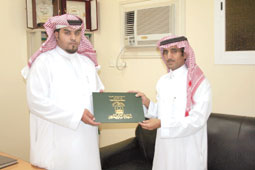 كرم النادي الصيفي التابع لجامعة الإمام محمد بن سعود الإسلامية والمقام في المعهد العلمي في محافظة الرس المحرر الصحفي بمكتب جريدة الجزيرة في محافظة الرس الزميل حسين بن محمد الصيخان بتسليمه شهادة شكر وتقدير من إدارة النادي وذلك لجهود الزميل المتميزة في تغطية فعاليات وأنشطة النادي خلال إقامته حيث تفضل مسؤول العلاقات العامة والإعلام في المعهد العلمي بالرس بندر بن عبدالله الخربوش نيابة عن مدير المعهد (النويصر) بتسليم الصيخان شهادة الشكر.