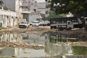 أعرب أهالي حي المحجر بجنوب جدة عن معاناتهم الطويلة من المياه المتواجدة بشوارع الحي باستمرار بعد خروجها من بيارات الصرف الصحي، والتقت (الجزيرة) داخل الحي مع الأهالي، وقال المواطن حمادة جابر: إن الحي يعاني منذ سبع سنوات من هذه المياه.. ووصف ما يحدث بالكارثة البيئية حيث تنبعث الروائح الكريهة طوال اليوم من طفح المجاري الملوثة. ومن جانبه أوضح قاسم مطلا بأنه يواجه حرجاً كبيراً مع زائريهم والضيوف، مشيراً إلى أن السكان محرومون من فتح النوافذ لما فيها من أضرار تشمل بالإضافة إلى تلك الروائح دخول البعوض، وأشار إلى حدوث تشققات وحفر على الأسفلت، حيث أصبحت الطرق غير صالحة للسير عليها، إضافة إلى اختلاط المياه الملوثة مع مياه الشرب في الخزانات مما يهدد الأهالى ويثير مخاوفهم من انتشار الأمراض الوبائية. وقال سالم القادري إن المجاري باتت مرتعاً للفئران والحشرات التي تنقل مرض حمى الضنك، وقال إن الكثيرين من السكان تقدموا بشكاوى إلى أمانة جدة وإلى الشركة الوطنية منذ فترة طويلة، ولكن دون جدوى، مما أجبر الكثيرين من السكان للرحيل من الحي.