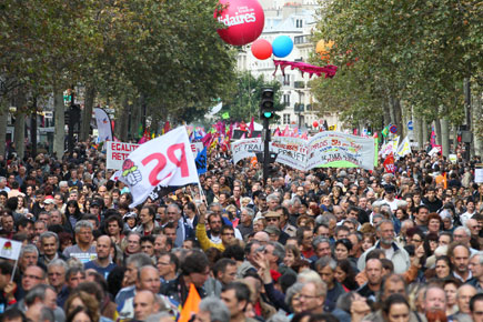 باريس - وكالات شارك «حوالي 2.9 مليون» شخص في تظاهرات ضد إصلاح نظام التقاعد أمس السبت في فرنسا، كما قال لوكالة فرانس برس المسؤول الثاني في نقابة «سي أف دي تي» مارسيل غرينيار «إي العدد نفسه تقريبا» الذي سجلته التظاهرات في 23 أيلول/ سبتمبر، ولم تعرف بعد الأرقام النهائية لوزارة الداخلية التي