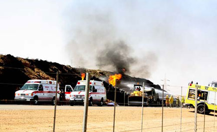 المجمعة - صالح الدهش تمكنت أربع فرق من إدارة الدفاع المدني بمحافظة المجمعة أمس الأربعاء من السيطرة على حريق كبير غطى سماء المجمعة بالدخان وذلك في وقت وجيز بعد تصادم لناقلتين إحدهما محملة بالوقود (البنزين) والأخرى تريلا سطحة, وقد نتج عن الحادث وفاة سائق التريلا متفحماً ونجاة السائق الآخر,