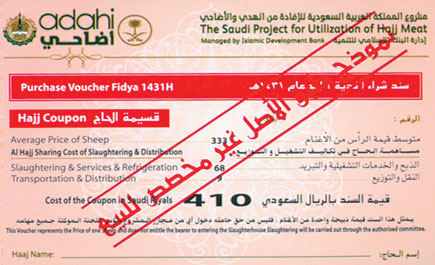 الجزيرة - الرياض قام مشروع المملكة العربية السعودية للإفادة من الهدي والأضاحي الذي يقوم بتنفيذه البنك الإسلامي للتنمية بطباعة سندات الهدي والأضاحي لموسم حج هذا العام 1431هـ ليبيعه على الحجاج على نسق ما تم في الأعوام السابقة وهي عبارة عن خمسة أنواع من السندات المعتمدة لهذا العام حيث يكون