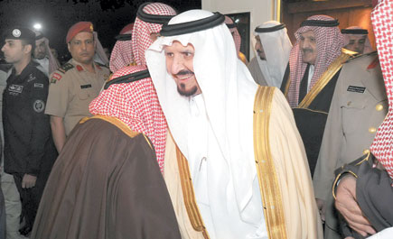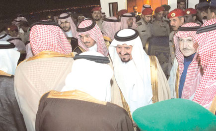 كما كان في استقبال سموه صاحب السمو الملكي الأمير فهد بن محمد بن عبدالعزيز وصاحب السمو الأمير عبدالرحمن بن عبدالله بن عبدالرحمن وصاحب السمو الأمير عبدالله بن محمد بن عبدالعزيز آل سعود وصاحب السمو الملكي الأمير بندر بن خالد بن عبدالعزيز وصاحب السمو الملكي الأمير عبدالله بن خالد بن عبدالعزيز وصاحب السمو الملكي الأمير خالد الفيصل أمير منطقة مكة المكرمة وصاحب السمو الملكي الأمير سطام بن عبدالعزيز نائب أمير منطقة الرياض وصاحب السمو الملكي الأمير أحمد بن عبدالعزيز نائب وزير الداخلية وصاحب السمو الأمير خالد بن عبدالله بن محمد وصاحب السمو الأمير فيصل بن محمد بن سعود الكبير وصاحب السمو الأمير خالد بن فيصل بن سعد وصاحب السمو الملكي الأمير محمد بن سعد بن عبدالعزيز مستشار وزير الداخلية وصاحب السمو الملكي الأمير مقرن بن عبدالعزيز رئيس الاستخبارات العامة وصاحب السمو الملكي الأمير تركي الفيصل رئيس مجلس إدارة مركز الملك فيصل للبحوث والدراسات الإسلامية وصاحب السمو الملكي الأمير فيصل بن بندر بن عبدالعزيز أمير منطقة القصيم وصاحب السمو الملكي الأمير منصور بن سعود بن عبدالعزيز وصاحب السمو الأمير فهد بن عبدالله بن محمد مساعد وزير الدفاع والطيران والمفتش العام لشؤون الطيران المدني وصاحب السمو الملكي الأمير خالد بن سلطان بن عبدالعزيز مساعد وزير الدفاع والطيران والمفتش العام للشؤون العسكرية وصاحب السمو الملكي الأمير بندر بن سلطان بن عبدالعزيز الأمين العام لمجلس الأمن الوطني وصاحب السمو الملكي الأمير فهد بن سلطان بن عبدالعزيز أمير منطقة تبوك وصاحب السمو الملكي الأمير سلطان بن سلمان بن عبدالعزيزرئيس الهيئة العامة للسياحة والآثار وأصحاب السمو الملكي الأمراء.