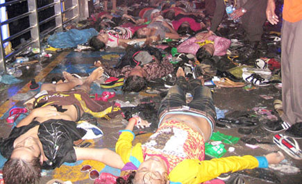 بنوم بنه - وكالات لقي 180 شخصاً حتفهم أمس الاثنين جراء تدافع حصل على أحد جسور بنوم بنه فيما كان ملايين الأشخاص في العاصمة الكمبودية يشاركون في الاحتفالات السنوية بعيد المياه. وأفاد مراسل وكالة الأنباء الألمانية (د ب أ) من موقع الحادث أن معظم الضحايا من الشباب الذين أصيبوا بحالة من الذعر