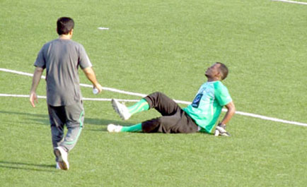الجزيرة - الرياض تعرض لاعب منتخب المملكة الأول لكرة القدم خالد شراحيلي لالتواء في الركبة خلال التدريب الذي خاضه المنتخب عصر أمس على ملعب نادي التلال في مدينة عدن وضمن استعداداته للمباراة القادمة يوم غد الخميس أمام منتخب الكويت ضمن دورة كأس الخليج المقامة حاليا هناك، ولم يستطع اللاعب شراحيلي