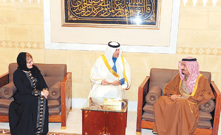 إثر ذلك استقبل صاحب السمو الملكي الأمير سلمان بن عبدالعزيز أمير منطقة الرياض في مكتب سموه بقصر الحكم أمس سفير الولايات المتحدة الأمريكية لدى المملكة جيمس ب سميث. وتم خلال الاستقبال تبادل الأحاديث الودية ومناقشة الموضوعات ذات الاهتمام المشترك بين البلدين الصديقين.