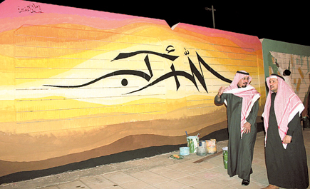 الجزيرة - المحرر التشكيلي : تجاوبا مع فكرة من سعادة مدير التربية والتعليم بمحافظة الدوادمي الأستاذ مشاري الرومي للقضاء على الكتابات وعبث بعض الشباب على الجدران المطلة على الشوارع العامة بمدينة الدوادمي تحت شعار (لنجعل الدوادمي أجمل) انطلقت أول تلك اللوحات بجدارية يقدر طولها (150) مترا