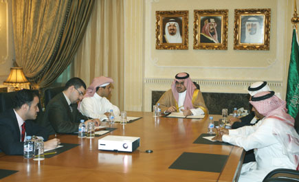 الجزيرة - الرياض: استقبل صاحب السمو الملكي الأمير نواف بن فيصل نائب الرئيس العام لرعاية الشباب بمكتب سموه أمس الأستاذ أديب الخويطر رئيس مجلس إدارة نادي العربي في محافظة عنيزه بمنطقة القصيم وأعضاء مجلس إدارة النادي. ورحب بهم سموه في بداية اللقاء ونقل لهم تحيات صاحب السمو الملكي