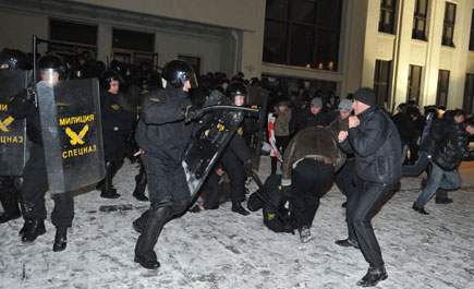 مينسك - (ا ف ب) اعتقلت شرطة بيلاروسيا الاثنين مئات المتظاهرين، بينهم سبعة مرشحين للمعارضة، أثناء تفريقها بالقوة تظاهرة ضخمة نظمت في مينسك للاحتجاج على إعادة انتخاب الرئيس الكسندر لوكاشنكو لولاية رابعة. وأعيد انتخاب لوكاشنكو في الدورة الأولى من الانتخابات الرئاسية التي جرت الأحد في بيلاروسيا