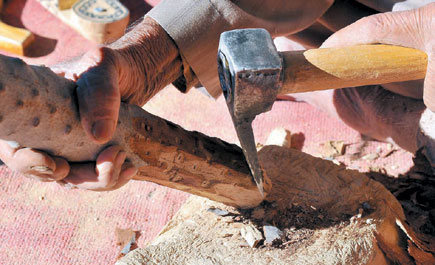 أم رقيبة - واس مارس 38 حرفيا هوايتهم في مركز الأسر المنتجة الذي تنظمه الهيئة العامة للسياحة والآثار ضمن فعاليات مهرجان جائزة الملك عبدالعزيز لمزاين الإبل في أم رقيبة. ويقوم 8 حرفيين و30 حرفية بصناعة منتجاتهم أمام زوار السوق وبيعها، حيث تعمل «8» حرفيات من الأسر المنتجة في بيع منتجات مختلفة