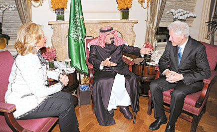 نيويورك - واس استقبل خادم الحرمين الشريفين الملك عبدالله بن عبدالعزيز آل سعود - حفظه الله - بمقر إقامته في نيويورك مساء أمس الأول معالي وزيرة الخارجية الأمريكية هيلاري كلينتون يرافقها فخامة الرئيس الأمريكي الأسبق بيل كلينتون وقد أعربت معالي وزيرة الخارجية الأمريكية وفخامة الرئيس الأمريكي