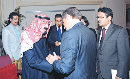 حضر الاستقبال صاحب السمو الملكي الأمير مقرن بن عبدالعزيز رئيس الاستخبارات العامة وصاحب السمو الملكي الأمير بندر بن سلطان بن عبدالعزيز الأمين العام لمجلس الأمن الوطني وصاحب السمو الملكي الأمير خالد بن عبدالله بن عبدالعزيز وصاحب السمو الملكي الأمير متعب بن عبدالله بن عبدالعزيز وزير الدولة عضو مجلس الوزراء رئيس الحرس الوطني وصاحب السمو الملكي الأمير عبدالعزيز بن عبدالله بن عبدالعزيز مستشار خادم الحرمين الشريفين ومعالي سفير خادم الحرمين الشريفين لدى الولايات المتحدة الأمريكية الأستاذ عادل بن أحمد الجبير.