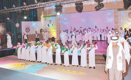الجزيرة - الرياض : قدّمت مجموعة من طلاب منطقة القصيم لوحة استعراضية خلال حفل التكريم، استحضرت في تفاصيلها وأناشيدها المكانة الكبيرة التي يحظى بها خادم الحرمين الشريفين الملك عبد الله بن عبد العزيز - حفظه الله - في قلوب أبنائه الطلاب، من خلال التغني في ليلة الوفاء والشكر لهم على تميّزهم،...>>>...
