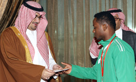 الجزيرة - الرياض : تسلم صاحب السمو الملكي الأمير سلطان بن فهد بن عبدالعزيز الرئيس العام لرعاية الشباب رئيس بعثة منتخب المملكة لكرة القدم المشاركة في كأس أمم آسيا 2011م الدوحة درع الوفاء الممنوح لسموه من الاتحاد الخليجي للإعلام الرياضي؛ تقديراً لما يوليه من دعم واهتمام للإعلام الرياضي ومنسوبيه...>>>...