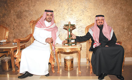 نيابة عن خادم الحرمين الشريفين الملك عبدالله بن عبدالعزيز رئيس نادي الفروسية رعى صاحب السمو الملكي الأمير سلمان بن عبدالعزيز أمير منطقة الرياض وعضو مجلس إدارة نادي الفروسية مساء البارحة السباق السنوي الكبير على كأس المليك وعقب نهاية الشوط السابع توج الأمير سلمان أنجال الأمير متعب بن عبدالله بكأس المليك لخيل الانتاج بعد أن حافظ الأسطبل الملكي على لقبه وللعام الثاني على التوالي بواسطة الجواد (الأكليل) كما توَّج سموه الكريم عقب نهاية الشوط الثامن الأسطبل الأحمر ومالكه الأمير فيصل بن خالد أمير منطقة عسير بكأس المليك لجياد المستورد الذي كسبه الجواد برج الكويت في سباق رائع اهتزت له مدرجات ميدان الملك عبدالعزيز الذي تابع قمة الأمسيات الفروسية الكبرى.. وسط أفراح بيضاء وحمراء شهدتها ساحات الميدان الكبير وحتى ساعة متأخرة من مساء البارحة.