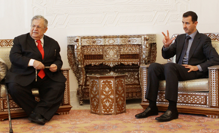 دمشق-سامراء (العراق)-وكالات أكدت سوريا والعراق أمس السبت ثقتهما التامة بقدرة الشعب المصري على إعادة مصر إلى (دورها الطبيعي العربي والعالمي) وجاء هذا التأكيد بعد مباحثات الرئيس السوري بشار الأسد ونظيره العراقي جلال طالباني في دمشق. وبحسب وكالة الأنباء الرسمية السورية (سانا) استعرضا الرئيسان...>>>...