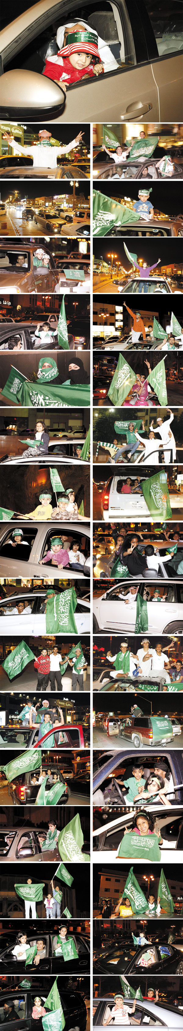 تواصلت الأفراح لليوم الثاني على التوالي في الشارع السعودي ابتهاجاً بالأوامر الملكية التي أعلن عنها خادم الحرمين الشريفين حفظة الله يوم الجمعة الماضي, واكتظت شوارع الرياض بمسرات الأفراح والسرور من المواطنين رافعين الأعلام السعودية والشعارات الوطنية وصور القيادة الرشيدة.