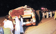 لقي شخصان مصرعهما مساء أمس الأول , بينما تعرض قرابة 27 شخصاً إلى إصابات متفاوتة تراوحت من خطيرة إلى بسيطة، جراء انقلاب حافلة «نقل جماعي» كانت تقلهم على طريق مكة ما بين الجلة والمزاحمية , وتعود تفاصيل الحادث إلى أن هطول كمية من المطر>>