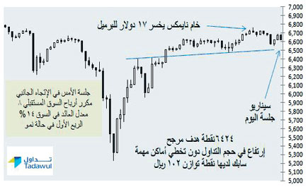 تحليل: وليد العبد الهادي جلسة الأمس افتتح السوق على صعود وصل ذروته 6690 نقطة قريب جداً لتوقعات تقرير الأمس، والدعم جاء من عملاق السوق (سابك) التي وصلت إلى 109.5 ريال، وأغلقت عند 108.75 ريال بنمط شرائي ضعيف نسبة لسلوكها في التعويض، ومؤشر القطاع البتروكيماوي أنهى جلسته بنفس...>>>...