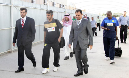 الجزيرة - الرياض : أجرى صاحب السمو الملكي الأمير نواف بن فيصل بن فهد بن عبدالعزيز الرئيس العام لرعاية الشباب مساء أمس اتصالاً هاتفياً برئيس بعثة الفريق الأول لكرة القدم بنادي النصر الأستاذ سلمان القريني اطمئن فيه على البعثة واستعدادات الفريق لمباراته المهمة أمام ذوب آهن الإيراني، وطلب...>>>...