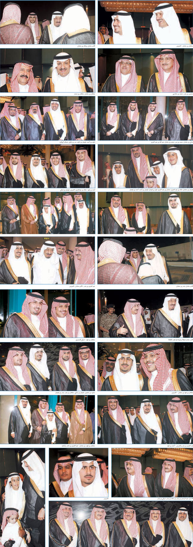كما حضر الحفل صاحب السمو الملكي الأمير فهد بن محمد بن عبد العزيز، وصاحب السمو الأمير عبد الرحمن بن عبدالله بن عبد الرحمن؛ وصاحب السمو الأمير خالد بن عبدالله بن عبدالرحمن، وصاحب السمو الملكي الأمير مشعل بن سعود بن عبدالعزيز، وصاحب السمو الأمير خالد بن فيصل بن سعد وصاحب السمو الملكي الأمير فيصل بن بندر بن عبدالعزيز أمير منطقة القصيم وعدد من أصحاب السمو والفضيلة والمعالي ووجهاء وأعيان المجتمع ورجال السلك الدبلوماسي وجمع غفير من المواطنين.(الجزيرة) تقدم خالص التهاني للعروسين وتتمنى لهما حياة سعيدة وذرية صالحة بإذن الله.