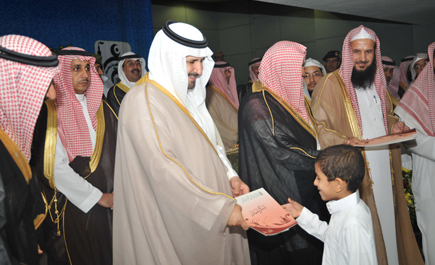 الجوف - محمدالحموان كرم صاحب السمو الملكي الأمير فهد بن بدر بن عبد العزيز، أمير منطقة الجوف مساء أول أمس 13 حافظاً لكتاب الله، جاء ذلك خلال الحفل الختامي الذي أقامته جمعية تحفيظ القرآن الكريم بمنطقة الجوف على مسرح الإدارة العامة للتربية والتعليم بالمنطقة. وقد ألقى رئيس مجلس...>>>...