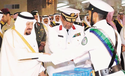 الجبيل - عيسى الخاطر - ظافر الدوسري رعى صاحب السمو الملكي الأمير عبدالرحمن بن عبدالعزيز آل سعود نائب وزير الدفاع والطيران والمفتش العام، أمس الأول حفل تخريج الدفعة 24 من طلبة كلية الملك فهد البحرية بالجبيل، وذلك بميدان العرض العسكري بالكلية بقاعدة الملك عبدالعزيز البحرية بالجبيل....>>>...