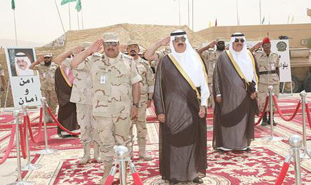 رعى صاحب السمو الملكي الأمير متعب بن عبدالله بن عبدالعزيز وزير الدولة عضو مجلس الوزراء ورئيس الحرس الوطني حفل تخريج كتيبة المشاة الآلية (43) من لواء الإمام تركي بن عبدالعزيز الأول حيث كان في استقبال سموه لدى وصوله موقع الكتيبة معالي نائب رئيس الحرس الوطني المساعد >>