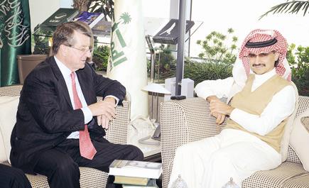 الجزيرة - الرياض : استقبل صاحب السمو الملكي الأمير الوليد بن طلال بن عبد العزيز آل سعود، رئيس مجلس إدارة شركة المملكة القابضة، الرئيس المشارك لإدارة مجلس الأعمال السعودي الأمريكي بيتر روبرتسون، والمدير التنفيذي لإدارة مجلس الأعمال السعودي الأمريكي إدوارد بورتون, ومدير مكتب الرياض سعود