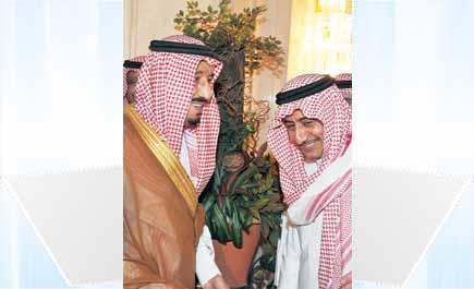 صاحب السمو الملكي الأمير سلمان بن عبد العزيز خلال استقباله الممثل ناصر القصبي الذي كان ضمن الحاضرين في قصر سموه بالمعذر مقدما له واجب العزاء مع عدد كبير من أصحاب السمو الملكي الأمراء وأصحاب الفضيلة المشايخ وأصحاب المعالي الوزراء وجموع من المواطنين الذين قدموا لتعزية سموه في وفاة الأميرة سلطانة بنت تركي...>>>...