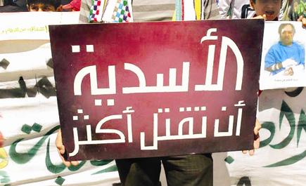 من ضمن حسنات ثورات الربيع العربي جاء ابتكار الشعارات منذ الثورة المصرية، إذ جاءت متناغمة مع مطالبات الجماهير التي تخرج للشوارع، مستمرة بتنوعها في اليمن وليبيا وسورية. ولعلّ واحدا من أجمل تلك الشعارات هو الشعار الذي بثته وكالة رويترز للأنباء لمظاهرة خرجت بعد صلاة الجمعة الماضية في محافظة...>>>...
