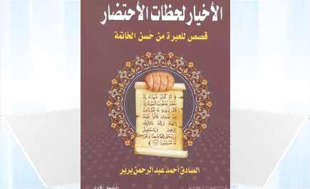 من تأليف الصادق أحمد عبدالرحمن صدر عن دار الحضارة كتاب بعنوان (الأخيار لحظات الأحتضار).. وجاء في المقدمة: ساعة الاحتضار لا يمكن لأحد أن يصف حقيقتها أو يصل إلى كنهها لكن الكل يعلم أنها ساعة رهيبة ولحظة مذهلة وأنها ساعة الانتقال والتحول من الدنيا إلى الآخرة، من الحياة إلى الموت). ولحسن الخاتمة...>>>...