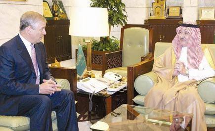الرياض - واس استقبل صاحب السمو الملكي الأمير سطام بن عبد العزيز أمير منطقة الرياض بالنيابة بمكتب سموه بقصر الحكم أمس صاحب السمو الملكي الأمير أندرو دوق يورك الممثل الخاص لبريطانيا للتجارة والاستثمار. وجرى خلال اللقاء تبادل الأحاديث الودية واستعراض العلاقات بين البلدين وقد...>>>...