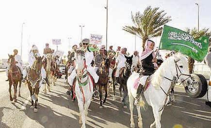 تبوك - عبدالرحمن العطوي يشارك أبناء مدينة تبوك في التعبير عن فرحهم بمناسبة اليوم الوطني من خلال فرقة الهجانة والخيالة الذين يسيرون في الميادين العامة وأماكن الاحتفالات العلم السعودي ومرددين الأناشيد الوطنية، راسمين صورة عفوية عن حبهم لوطنهم....>>>...