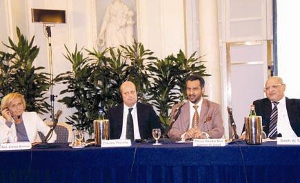 روما - واس رعى صاحب السمو الأمير الدكتور بندر بن سلمان بن محمد مستشار خادم الحرمين الشريفين رئيس فريق التحكيم السعودي المشرف على برنامج تدريب القضاة في الخارج، في العاصمة الإيطالية روما ندوة «للتعريف بمشروع خادم الحرمين الشريفين لتطوير القضاء», بحضور نائبة رئيس مجلس الشيوخ الإيطالي امما...>>>...