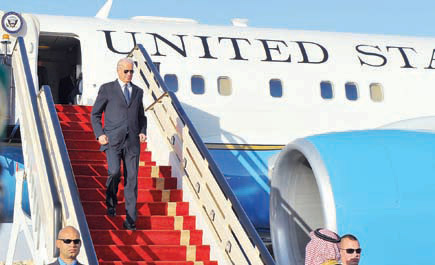 الجزيرة - واس وصل نائب الرئيس الأمريكي جو بايدن إلى الرياض أمس لتقديم واجب العزاء والمواساة لخادم الحرمين الشريفين الملك عبدالله بن عبدالعزيز آل سعود، وصاحب السمو الملكي الأمير نايف بن عبدالعزيز آل سعود النائب الثاني لرئيس مجلس الوزراء وزير الداخلية -حفظهما الله- والأسرة المالكة والشعب...>>>...
