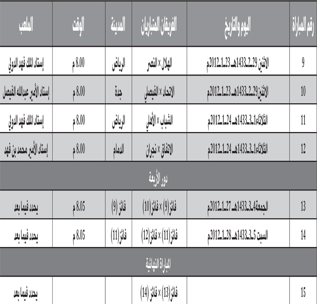 مواعيد وأماكن إقامة مباريات المرحلة النهائية لكأس ولي العهد