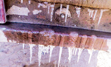 تبوك - محمد العمراني: اجتاحت منطقة تبوك أمس موجة برد قارصة، سجَّلت فيها درجات الحرارة ثلاث درجات تحت الصفر؛ فتجمدت المياه، وتكوَّن الصقيع في ساعات الصباح الأولى. ويشهد عدد من مناطق المملكة هذه الأيام موجة من البرد، تستمر لمدة ثلاثة أيام قادمة، حسب توقعات عدد من المواقع المناخية.