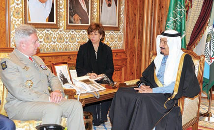 الجزيرة - واس: تنفيذًا لأمر خادم الحرمين الشريفين الملك عبد الله بن عبد العزيز آل سعود القائد الأعلى لكافة القوات العسكرية قلَّد صاحب السمو الملكي الأمير سلمان بن عبد العزيز وزير الدفاع معالي الفريق الركن عبدالرحمن بن عبد الله المرشد نائب رئيس هيئة الأركان العامة، ومعالي الفريق الركن محمد