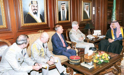 الجزيرة - واس: استقبل صاحب السمو الملكي الأمير خالد بن سلطان بن عبدالعزيز نائب وزير الدفاع في مكتبه بالمعذر أمس معالي رئيس هيئة أركان القوات البرية الفرنسية الفريق بير تران راكت مادو والوفد المرافق له. وتم خلال الاستقبال استعراض أوجه التعاون بين البلدين. حضر