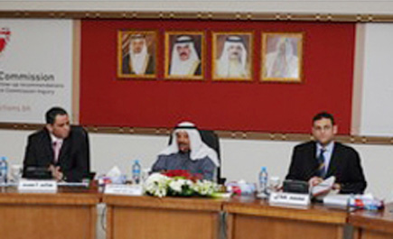 البحرين - جمال الياقوت: التقت اللجنة الوطنية المعنية بتوصيات اللجنة البحرينية المستقلة لتقصي الحقائق بالوفد الممثل للجنة البحرينية المستقلة لتقصي الحقائق برئاسة القاضي خالد أحمد محيي الدين الذي يعمل مع البروفيسور محمود شريف بسيوني، حيث تم خلال اللقاء إطلاع الفريق بشكل شامل على آليات عمل