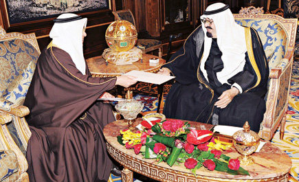 الجزيرة - واس: تسلم خادم الحرمين الشريفين الملك عبدالله بن عبدالعزيز آل سعود حفظه الله رسالة من أخيه جلالة الملك حمد بن عيسى آل خليفة ملك مملكة البحرين الشقيقة. وقام بتسليم الرسالة لخادم الحرمين الشريفين أيده الله سمو الشيخ محمد بن مبارك آل خليفة نائب رئيس مجلس الوزراء في