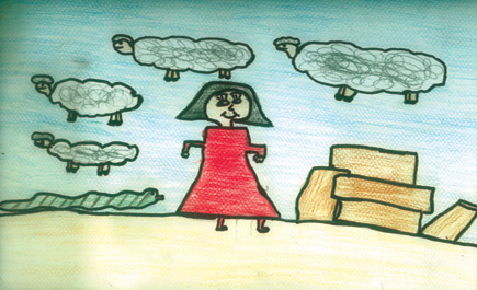 عاشت بنت يتيمة مع عمها وزوجته الغيورة، التي كانت تكرهها وتحقد عليها وتشي بها إلى عمها الذي كان كثيراً ما يؤنبها، فتبكي المسكينة لأنها لم تفعل شيئاً يستحق التأنيب. وكانت زوجة عمها تعطيها الثياب الرثة، وكثيراً من الأحيان لا تجد ما تلبسه في قدميها فتسير حافية، وإن ذهبت إلى البر لجمع الحطب مع بنات جيرانها
