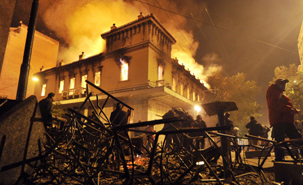أثينا - وكالات: اندلعت الحرائق في نحو أربعين مبنى في أثينا خلال التظاهرة المناهضة لخطة التقشف التي أقرها البرلمان اليوناني مساء الأحد, حسبما أعلن وزير حماية المواطن اليوناني خريستوس بابوتسيس. وقال الوزير «لقد ارتكبت عناصر متطرفة للأسف أعمال تخريب في أثينا». ودان رئيس الوزراء لوكاس بابادامسو