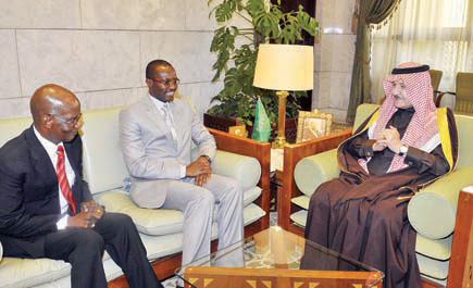 الجزيرة - واس: استقبل صاحب السمو الملكي الأمير سطام بن عبدالعزيز، أمير منطقة الرياض، بمكتب سموه في قصر الحكم أمس، سفير جمهورية الجابون المعيَّن لدى المملكة إسماعيل نياما لينجو. وقد تم خلال اللقاء تبادل الأحاديث الودية ومناقشة الموضوعات ذات الاهتمام المشترك بين البلدين الصديقين.